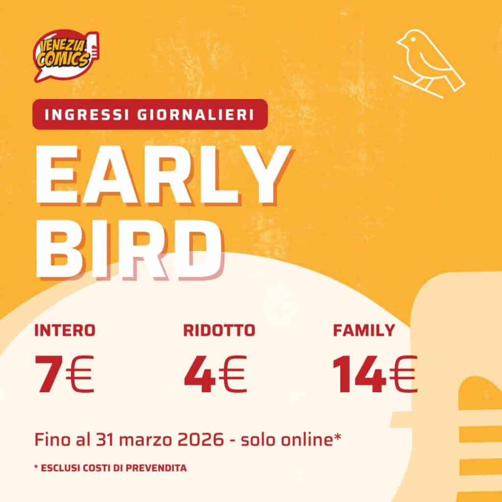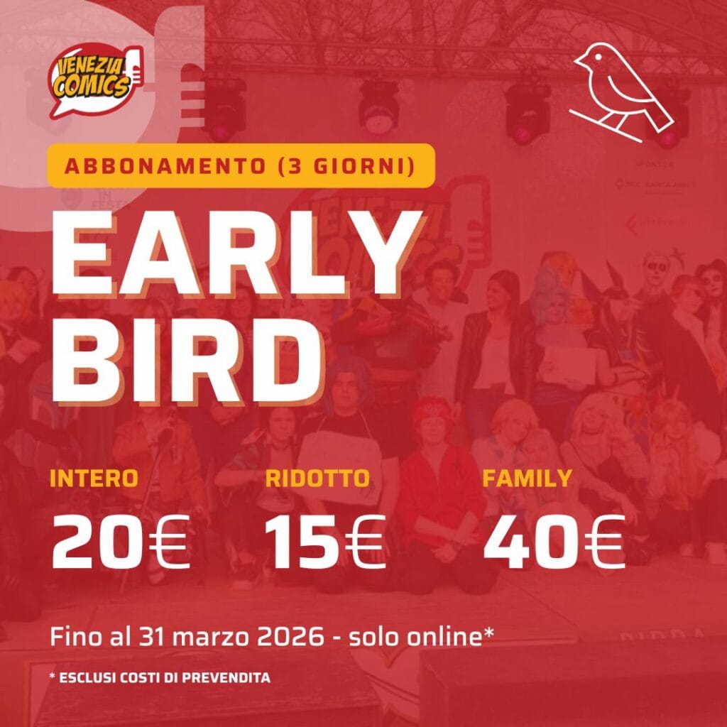 - Early Bird (Online): Il massimo del risparmio! Acquista il tuo biglietto entro il 31 marzo per approfittare del prezzo più basso in assoluto.