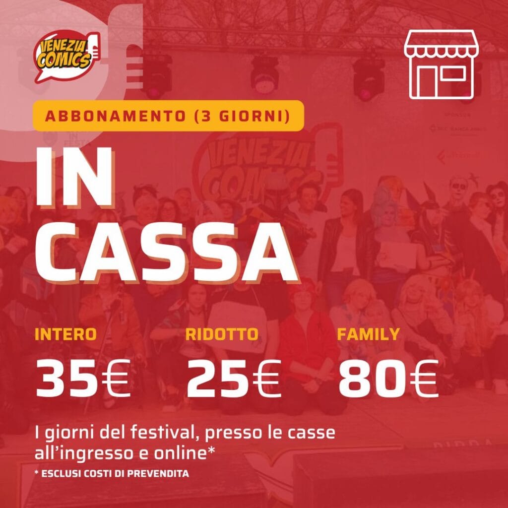 - Ridotto: dedicato ai giovani talenti (6-12 anni), ai veterani del fumetto (over 65) e alle riduzioni previste per legge.